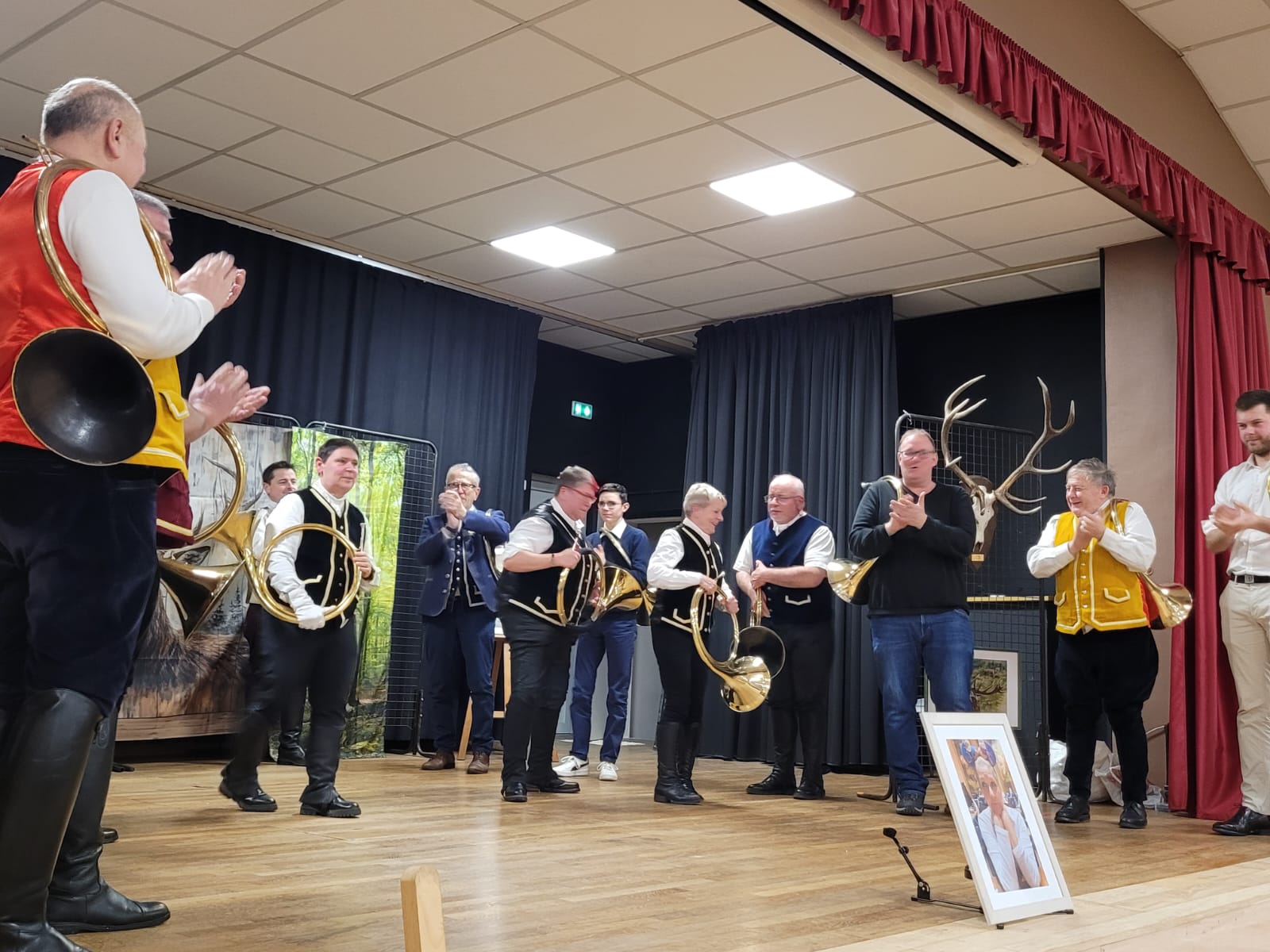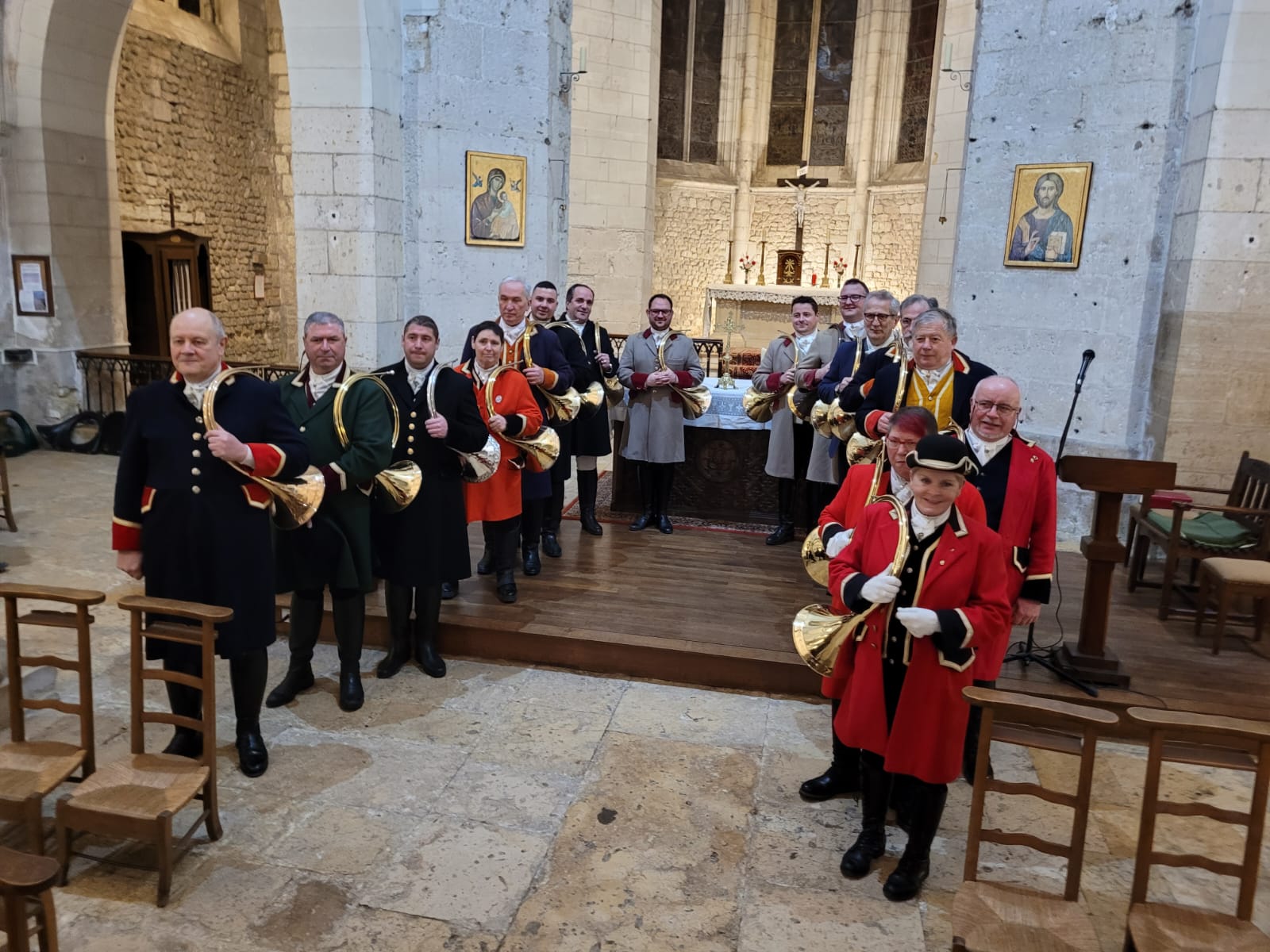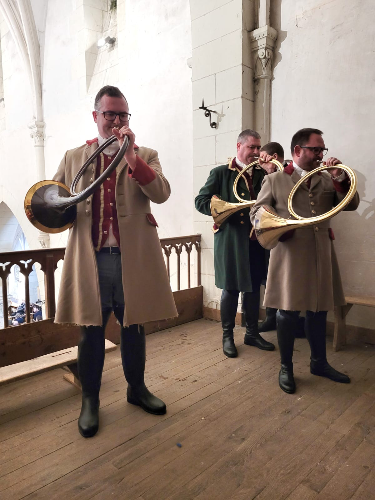 Les trompes des « Amis de Nicolas » font résonner en l’église de Notre Dame de Nanteuil de Montrichard dans le loir et cher, l’âme de la vénerie et de la chasse.